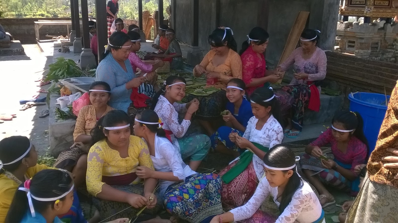 Perempuannya majejahitan untuk sarana upacara bersama guru-guru yang perempuan. Sementara guru-guru yang laki-laki berada di tempat berbeda ngayah membuat katik.